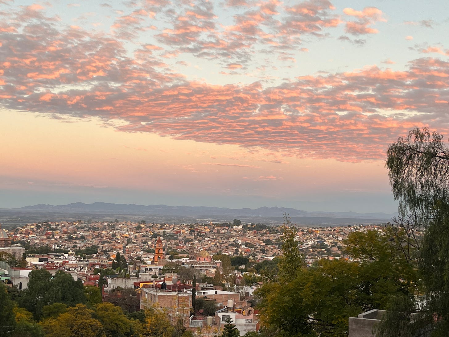 In Canada, I write in my office, which overlooks a courtyard and beautiful garden. One wall, floor to ceiling, is books—we have libraries throughout the house and this one is international fiction. Another wall is a large window. Instead of a curtain, hand blown glass hummingbirds, hot-air balloons, birds, and nests hang from wide ribbons tied to a curtain rod, a variation on the Mexican practice of indicating a place of business with a curtain of fluttering ribbons. In Mexico, where I live half the year, my writing room is a large room that used to used for yoga classes. It is on the third floor and is walled on two sides by windows so that as I write I look out over the whole town and its five 17th century churches, which toll the hours for me.